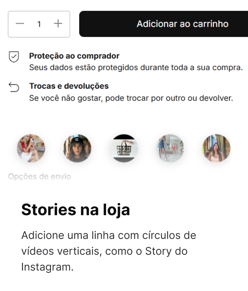 Você acessa a loja e, imediatamente, um botão flutuante exibe um vídeo interativo do produto em uso. Você vê os detalhes, entende o caimento, confere opções complementares e, em poucos cliques, adiciona ao carrinho com total confiança. Comprar nunca foi tão fácil e envolvente!